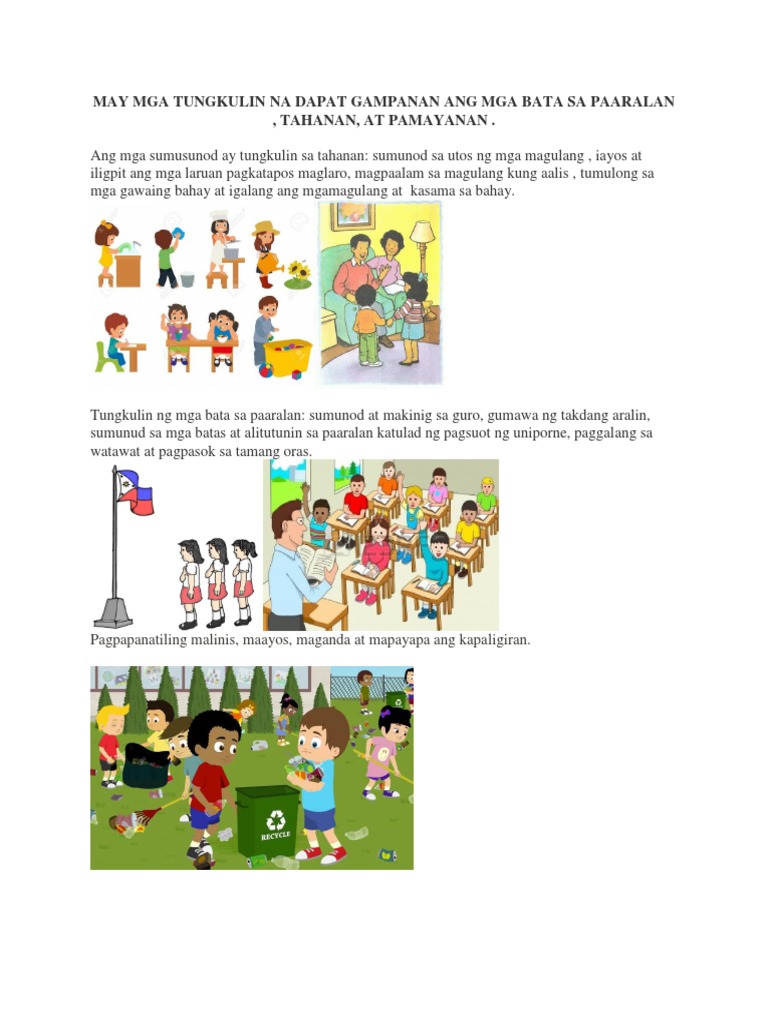 May Mga Tungkulin Na Dapat Gampanan Ang Mga Bata Sa Paaralan Pdf