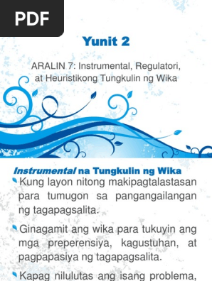 Aralin 7 Instrumental Regulatori At Heuristikong Tungkulin Ng Wika Pdf