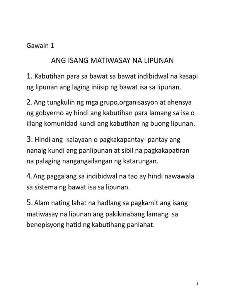 Tungkulin ng mga ito na magpatupad ng mga programa at batas na magtatakda ng katiwasayan kaunlaran at kapanatagan ng kanilang mga nasasakupan. - Mag-iipon mag-iingat at magbabahagi ng yaman ang. Halos ganito rin ang pagpapakahulugan ng ilang mga sosyologo tungkol sa lipunan.