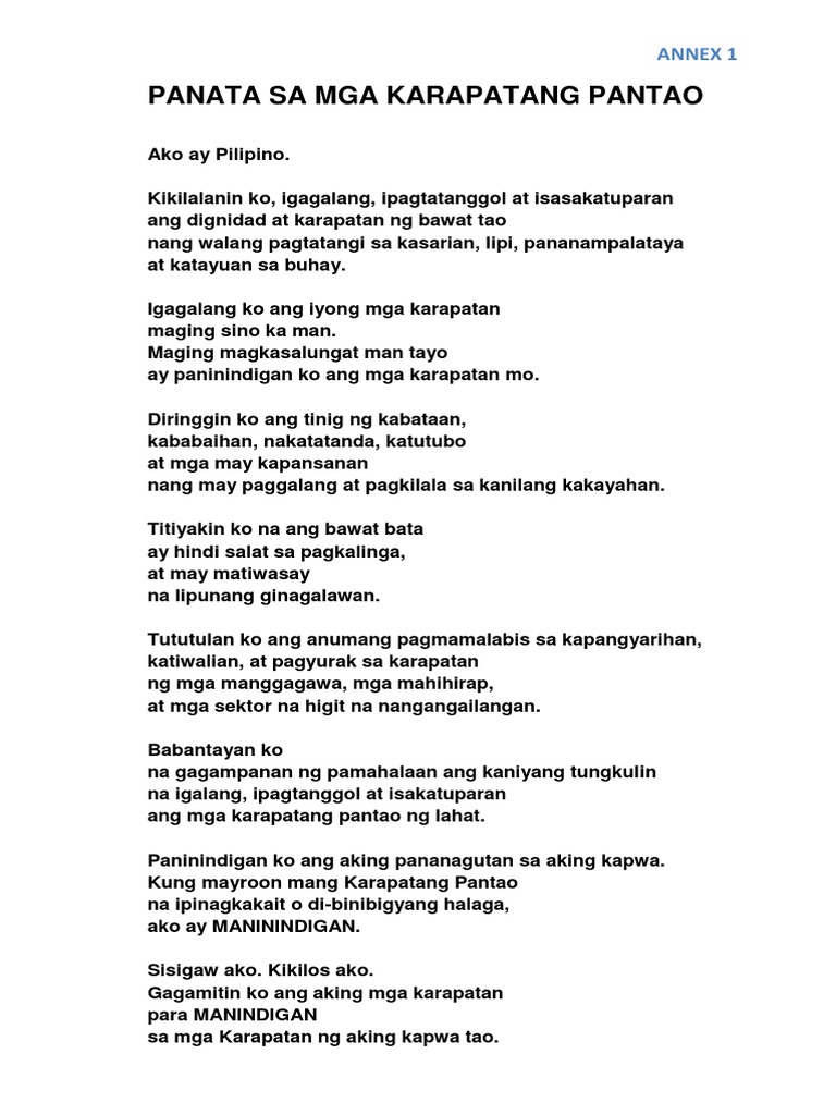 Annex 2 Panata Sa Karapatang Pantao 2018nov6 Och Pdf