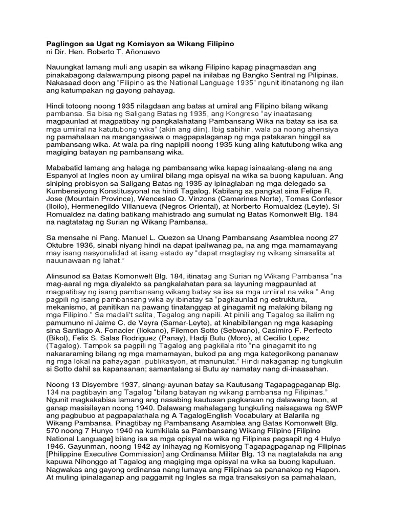 Paglingon Sa Ugat Ng Komisyon Sa Wikang Filipino Pdf